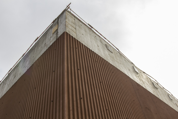 – To rozwiązanie, które pozwoli uzyskać jednorodną, odporną na mróz strukturę. Główną konstrukcją jest żelbet, ściany zewnętrzne to monolit. Poza szewronem na elewacji pojawi się detal - miedziane rurki. Wszystkie elementy tworzą całość, spójną kompozycję. Zależało nam na tym, aby budynek zyskał tożsamość, ale i był tłem dla ekspozycji - podkreśla Szczepan Wroński z WXCA.