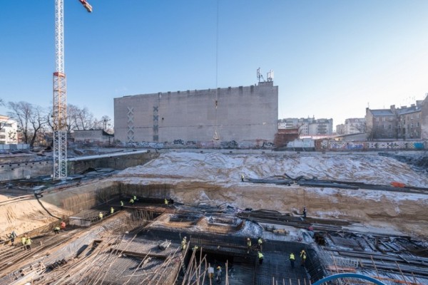 – Trwają intensywne roboty żelbetowe. Zbrojone i betonowane są poszczególne pola robocze płyty fundamentowej oraz elementów pionowych takich jak ściany i słupy. W dniach betonowania na budowę wjeżdża od 100 do 200 betonowozów, przywożąc od 120 do 400 msześć. betonu – mówi Sebastian Bieńkowski, dyrektor techniczny Angel River.