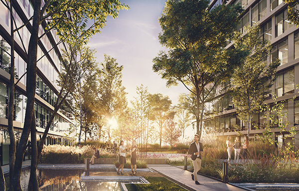 Na powierzchni prawie 2,3 tys. mkw. architekci Cavatina zaprojektowali strefę relaksu - zieleń porośnie tarasy i patio. Kompleks składa z dwóch wież biurowo-usługowych i jednej mieszkaniowej osadzonych na wspólnym pięciokondygnacyjnym podium, w którym, w galeryjnym układzie, znajdą się lokale gastronomiczne i usługowe. Wieże biurowe liczące po 25 pięter, zapewnią łącznie dostęp do blisko 60 tys. mkw. powierzchni. Wieża mieszkaniowa pomieści ponad 670 mieszkań, w zróżnicowanych wariantach metrażowych. Dla samochodów przewidzianych jest ponad 2 tys. miejsc parkingowych dla samochodów, zadbano również o infrastrukturę dla rowerzystów, którzy będą mieli do dyspozycji miejsca postojowe, szatnie i prysznice.