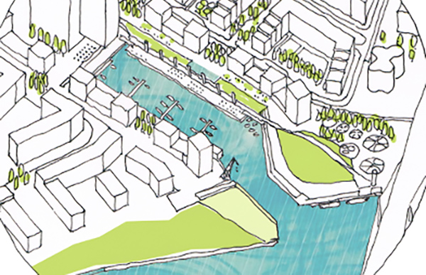 – Postawiliśmy sobie za cel zaprojektowanie przestrzeni publicznej odpornej na wyzwania związane ze zmianami klimatu – podkreśla architekt Witold Śliwa z wrocławskiej pracowni AiS. Zaproponowano rozwiązania, sprzyjające retencji wody na terenie inwestycji, zielony dach nad parkingiem rowerowym, jako przedłużenie placu publicznego, zielone nabrzeże w formie kaskadowego ogrodu deszczowego, błękitno-zielone place, niwelujące efekt miejskich wysp ciepła między budynkami, a także kompozycje z zieleni wysokiej i niskiej. W sąsiedztwie basenu portowego dopuszcza się ruch pieszy oraz rowerowy.